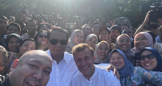 “Pak Presiden, Pak, foto selfie Presiden. President Macron, Sir, please,” seru para jurnalis dari berbagai platform media nasional yang berkumpul di pelataran candi.